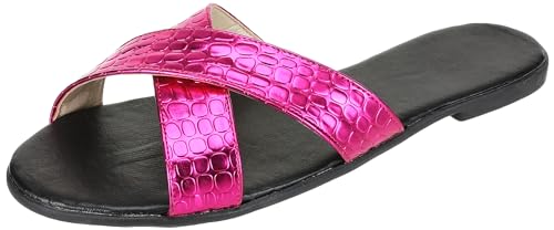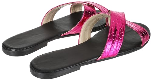 SWAY - حذاء مسطح بنعل خارجي مريح أسود مدمج مع جزء علوي بسيط من جلد التمساح المتقاطع سواي مقاس 38 لون فوشيا للنساء