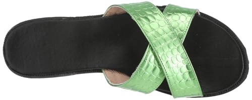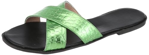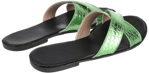 SOUL 2 SOLE - حذاء سابو بنعل مسطح مريح أسود مدمج بحزام علوي مزدوج بنقشة جلد التمساح بلون ميتالك من سواي، لون أخضر، مقاس 38 EU