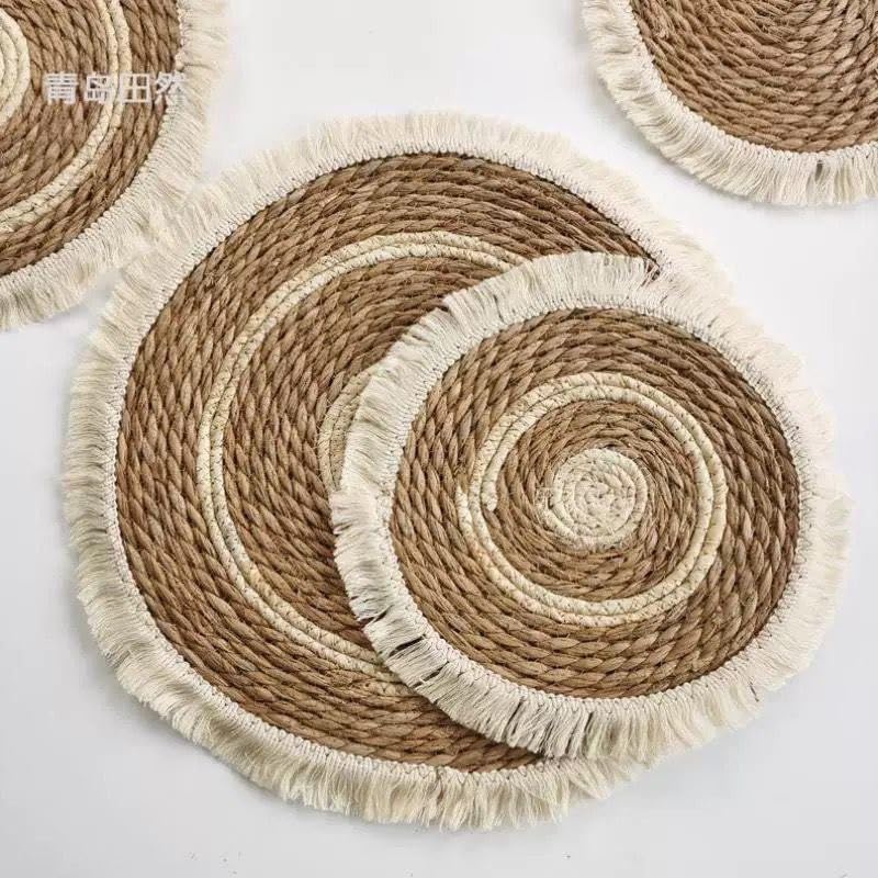Generic - 38cm Solid Wicker Coaster Braided Long Lasting Non-Slip Multifunctional Practical Bowl Mat Reusable (Shape 3)