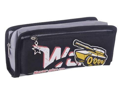 3A - مقلمة قماش 2 سوستة للاطفال مقاس 9X20 سم من 3A - أسود و رمادي DY-710