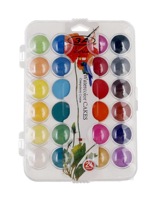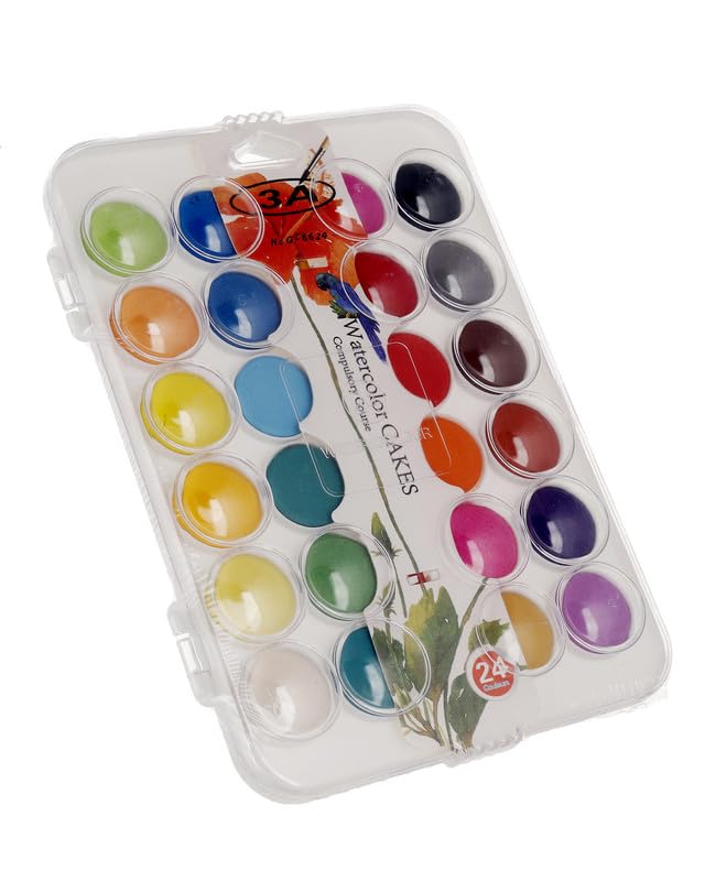 3A - 3A G-6624 Watercolor Paint Set Of 24 Colors With Brush - Multi Color