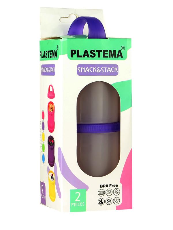 3A - عمود تخزين طعام بلاستيك من ثري ايه، لون موف 2052، مكون من قطعتين