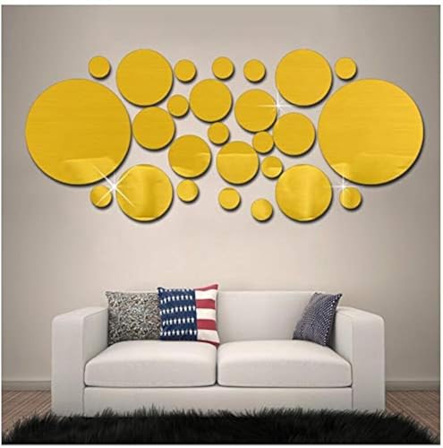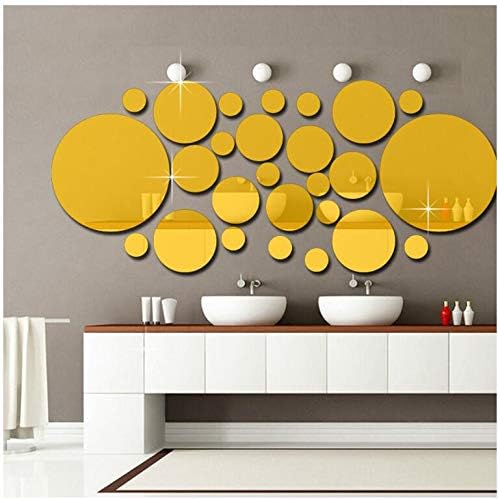 Other - ستيكر لاصق ثلاثي الابعاد من الاكريليك لتزيين المنزل، يمكنك تركيبه بنفسك، ملصقات حائط دائرية ومرآة، ذهبي، من اذر عدد 1
