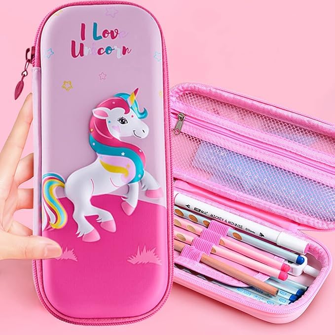 Generic - 3D EVA Cartoon Pencil Case, Waterproof Large-Capacity Pen Holder With Three-Layer Storage, Mesh Pocket And Pen Slot, Durable Stationery Organizer Box For School Supplies (Pink, Unicorn)