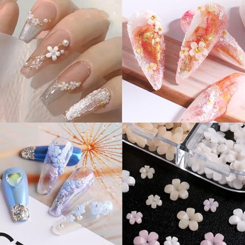 Generic - دلايات فنية للاظافر ثلاثية الابعاد على شكل زهرة من الاكريليك، لوازم فن الاظافر ثلاثية الابعاد على شكل زهور وحجر الراين، زينة الاظافر من خمس بتلات للنساء والفتيات