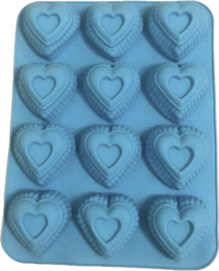 Generic - 3D Heart Shape Silicone Baking Tray, 12 Cavities, Muffin, Chocolate, Soap, Candy, Jelly molds blue قالب خبز سيليكون ثلاثية الأبعاد شكل قلب، 12 تجاويف، المافن، الشوكولاتة، الصابون، الحلوى، الجيلي أزرق
