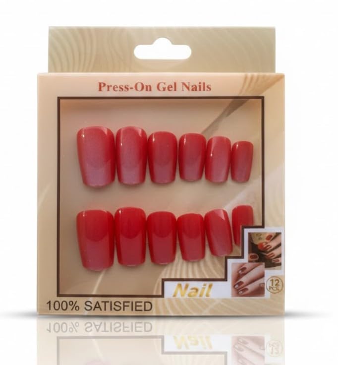 - أظافر جل قطط بريس أون سهلة التركيب ومناسبة للحفلات، تأتي مع 1 × ورقة من الصمغ مزدوج الوجه، 12 قطعة متوسطة الطول، أحمر فاتح عاكس (مراية)