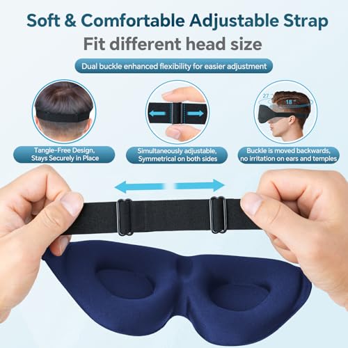 - Latest 3D Design: Eye mask based on ergonomics. The contours of the eyes area are deeper and your eyes can move freely. No pressure to your eyes, perfectly solves the tightness of the silk Sleep masks, bring you a comfortable and long-lasting sleep.