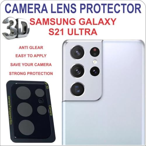 Whats Mob - 3D Tempered Glass Camera Lens Protector Compatible with Galaxy S21 Ultra – Black Version, 9H Hardness, Full Coverage, Anti-Scratch