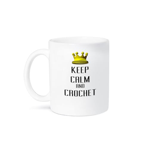 3dRose - 3dRose Gold Crown Keep Calm And Crochet Ceramic Mug, 11 oz, White