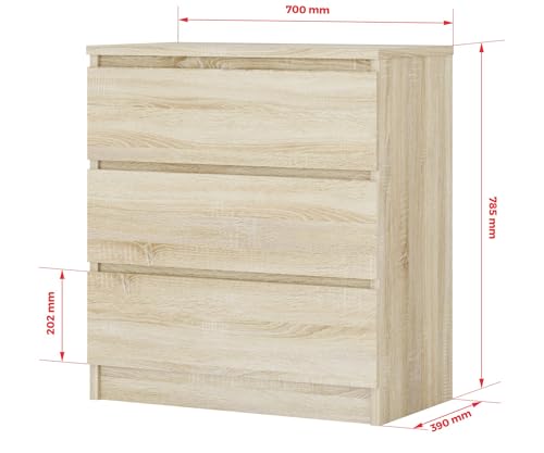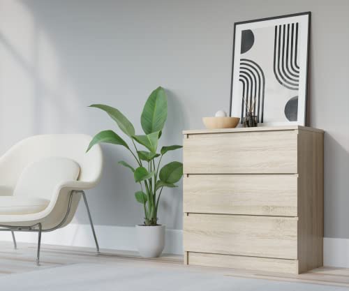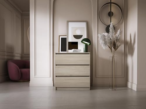 3E 3xE living.com - دولاب مكون من 3 أدراج، لون سونوما اوك، الارتفاع 79 سم، العرض 70 سم، العمق 39 سم من 3 اي 3×اي ليفينج دوت كوم دولاب لغرفة المعيشة والمكتب وغرفة النوم