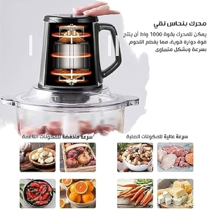 - The electric tumbler provides practical performance with a 200W motor that helps mince meat, vegetables and nuts, with a daily home use design and 3 speeds that allow you to control the degree of mincing by ingredient type.