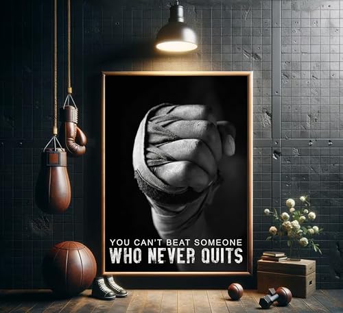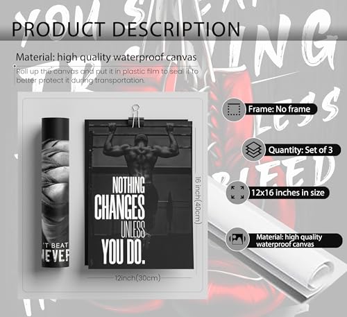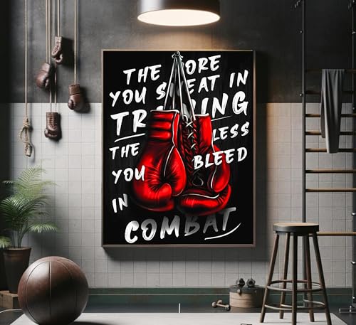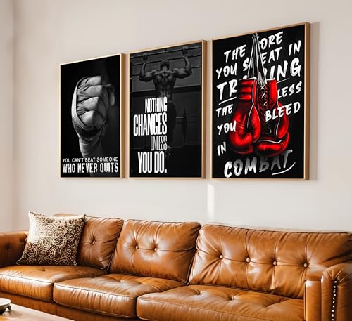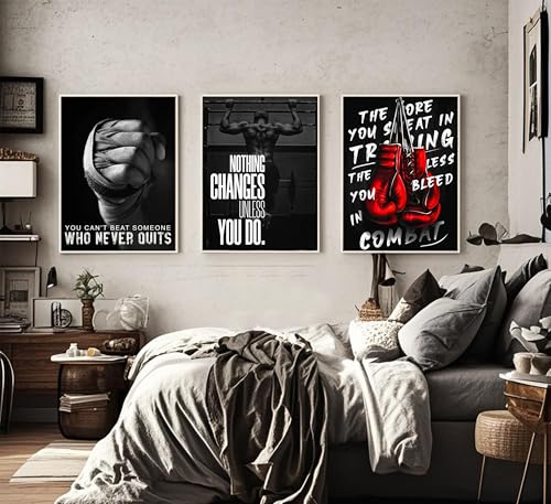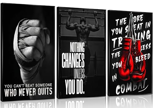 ESPWTOUD - 3Pcs Boxing Sports Canvas Wall Art Boxing Gloves Fitness Motivational Quote Painting Picture Wall Decor Black and White Exercise Poster Print Artwork for Teen Room Dorm Gym Livingroom Home Decoration
