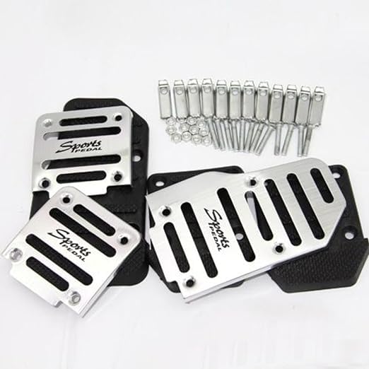 Generic - ثلاث قطع من وسادات دواسة السيارة غير القابلة للانزلاق والغاز والوقود والبنزين والفرامل سيلفر