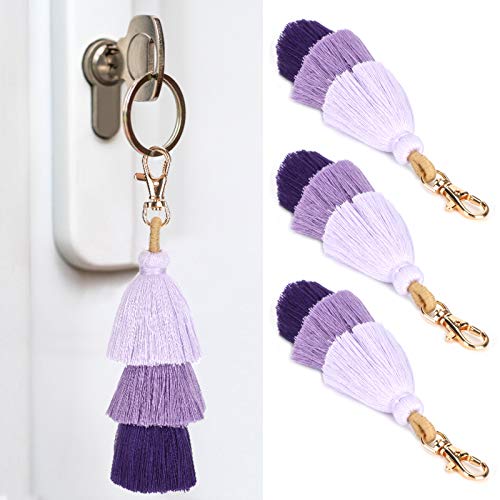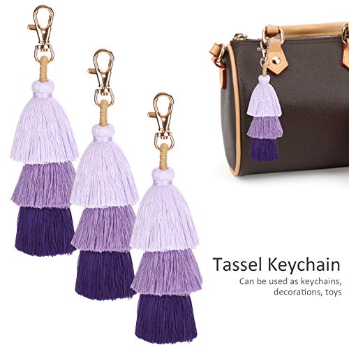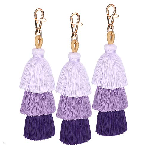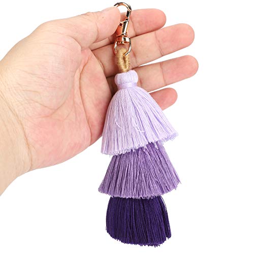 Pssopp - 3 قطع ملونة بوهو بوم بوم شرابة سلسلة مفاتيح بشراشيب بوهيمية حقيبة يد سلسلة مفاتيح شرابة للنساء