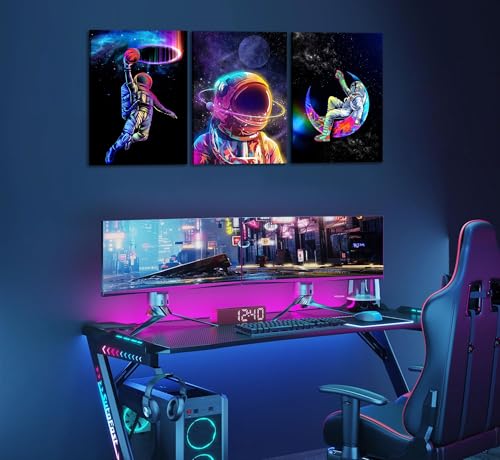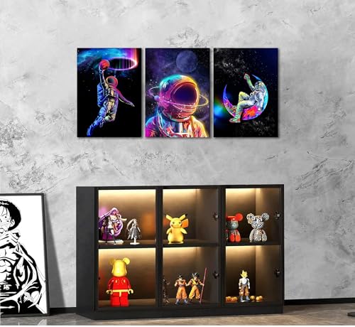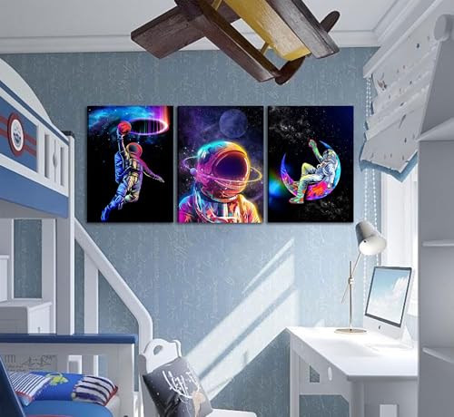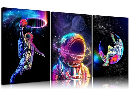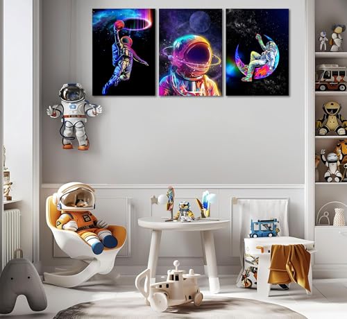 GKQNMU - 3pcs Cool Astronaut Canvas Wall Art Universe Space Boy Wall Decor Pictures Funny Whimsical Spaceman Basketball Posters Prints Paintings for Teen Boys Room Living Room Bedroom Decoration Ready To Hang
