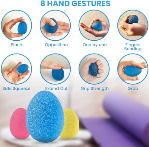 - ⭐【قبضة فعالة】يمكن أن تساعد هذه الكرات الثلاث على تقوية اليدين وتحسين حركة الأصابع. يساعد السطح المنسوج للكرات على تحسين الدورة الدموية وتقليل التوتر. يوفر التصميم على شكل بيضة لكرات الإمساك هذه قبضة مريحة وفعالة تساعد على تقوية عضلات اليدين والأصابع. مثالية لأولئك الذين يعانون من التهاب المفاصل أو متلازمة النفق الرسغي أو غيرها من الحالات التي تؤثر على اليدين والأصابع.