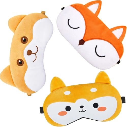 fashion mania - 3Pcs Eye Mask Sleeping,Cute Animal Designs (Fox, Cat, Dog),Sleep Mask for Kids
