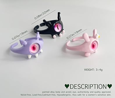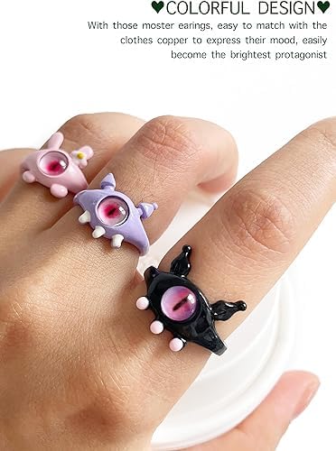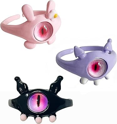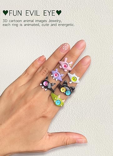 fashion mania - 3Pcs Fun 3D Cartoon Evil Eye Adjustale Open Rings for Teen Girl Kid Colorful Animal Ring Chunky Jewelry Halloween Chirstmas Gift