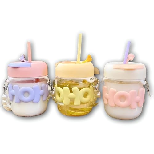 Generic - 3pcs Glass Drink Set with Suction and Silicone Case - 450ml Borosilicate Cup, Leak-proof Cover, Elegant HOH Style