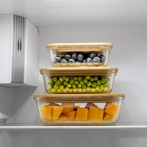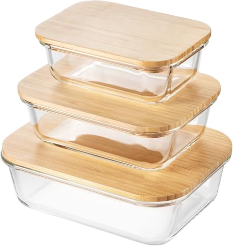 - 🥗 AIRTIGHT FOOD STORAGE CONTAINERS: Set of 3 premium borosilicate glass containers with airtight wooden lids and silicone seal to lock in freshness. BPA-free, non-porous, and resistant to stains & odors.