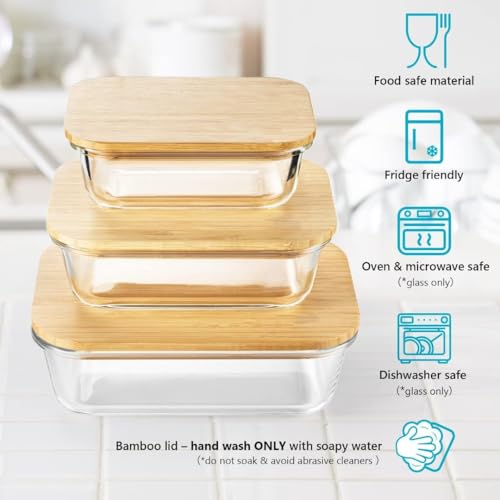 - 📦 SPACE SAVING STORAGE: Stackable design for neat & tidy kitchen storage. Containers nest inside each other for compact storage when not in use. Keep your fridge & pantry organized with these elegant glass food containers. Wooden lids – hand wash only.
