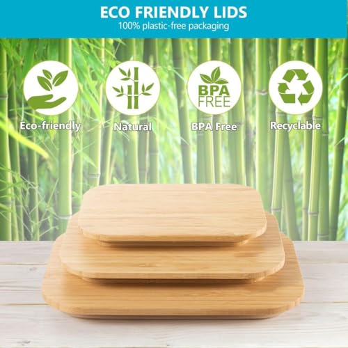 Azonee - 3Pcs Glass Food Storage Containers with Bamboo Lids, Azonee Eco-Friendly Meal Prep Containers, Airtight Nesting Lunch Box, Plastic-Free, Reusable Glass Containers