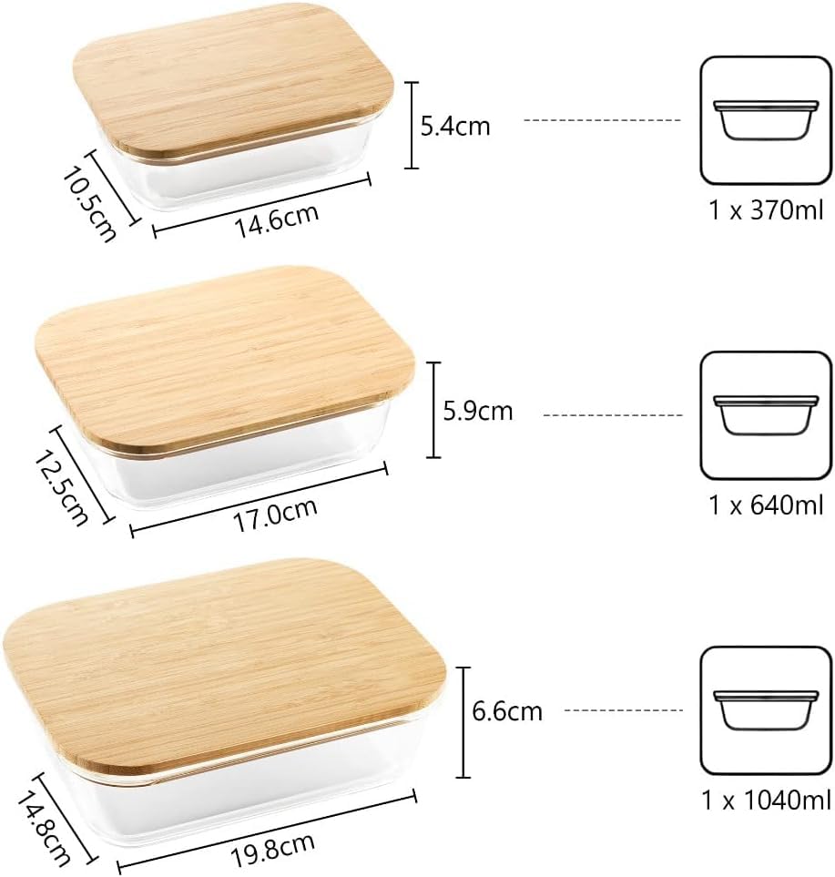 - 📏 MULTI-SIZED GLASS CONTAINERS: Three versatile sizes (1040ml, 640ml, 370ml) keep food fresh and organized. Heat-resistant glass (without lid) is microwave, oven (up to 300°C), and dishwasher safe. Ideal for baking, heating, and serving dishes like gratins and pies.