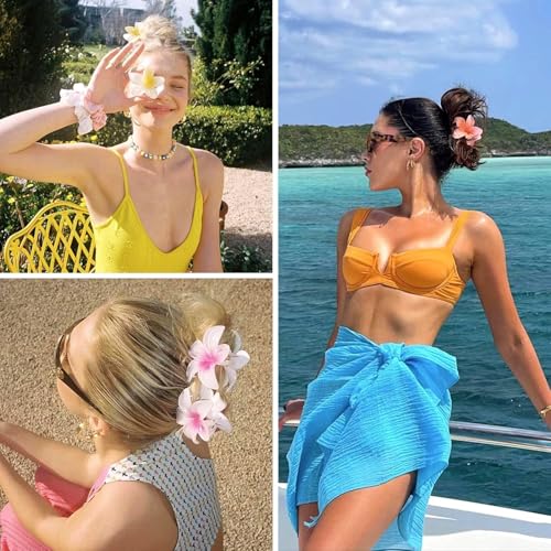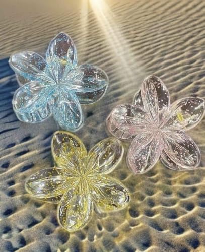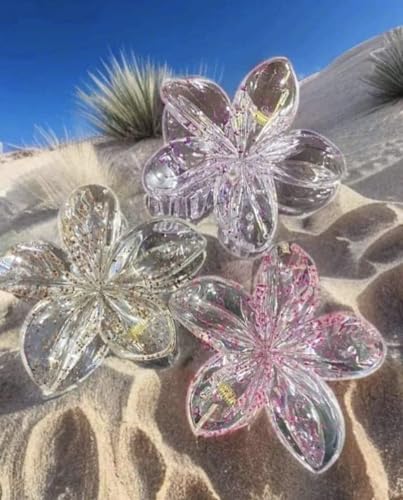 Generic - مشابك شعر بتصميم زهرة هاواي بلوميريا، مشابك شعر صيفية متدرجة من الأكريليك للشعر متوسط السماكة للنساء والبنات، اكسسوارات شعر هاواي، 3 قطع (متعددة الألوان ولامعة)