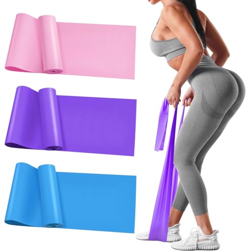 huiyoujiu - مجموعة أربطة مقاومة لتمارين اللياقة البدنية مكونة من 3 قطع، أشرطة تمرين مرنة بـ3 مستويات مقاومة للبيلاتيس واليوجا وتمارين التمدد، أحزمة مقاومة لتدريبات القوة، وردي وأرجواني وأزرق