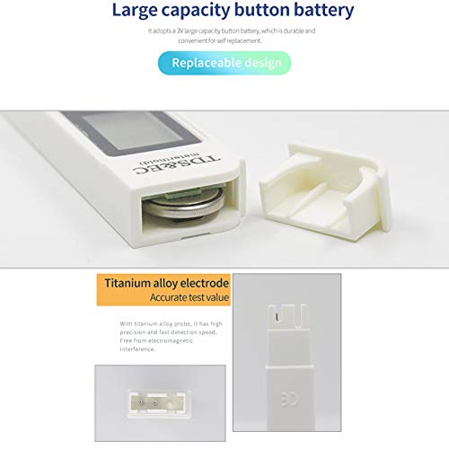 - [Three-in-one TDS measuring instrument] Its measuring range is 0-9990ppm, 0-9990µs/cm; accuracy ±2%, 0.1-80.0 degree celsius, 32.0-176.0 degree fahrenheit.