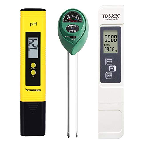 - [Function] It is very suitable for TDS and pH testing applications in all homes and laboratories, including aquariums, swimming pools. Three-in-one plant moisture sensor can test soil moisture, light and pH.