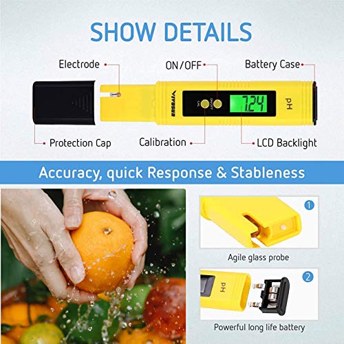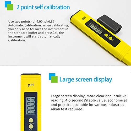 - [Meter] The complete measuring range of pH value is 0-14, reliable and fast reading.