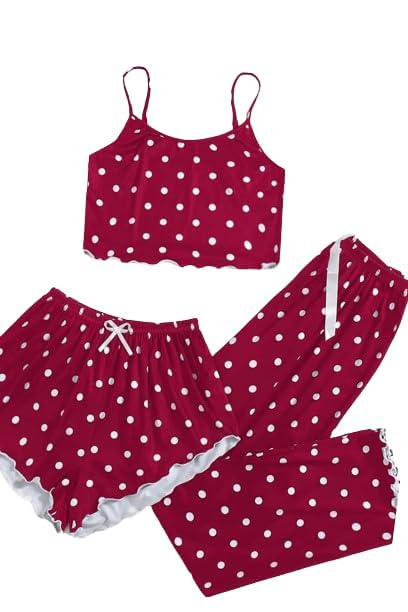 Generic - بيجامة من 3 قطع - مصنوعة من الزبدة المنقطة (احمر، حتى 75 كجم)