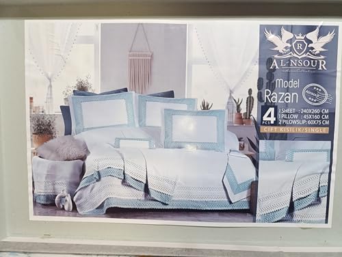 Generic - طقم مفرش سرير كبير النسور رازان 4 قطع 1ملاية مقاس 240x260 سم و 2 خددية مقاس 60x75 سم و 1 مخدة كبير مقاس 45x160 سم اللون بيبي ازرق