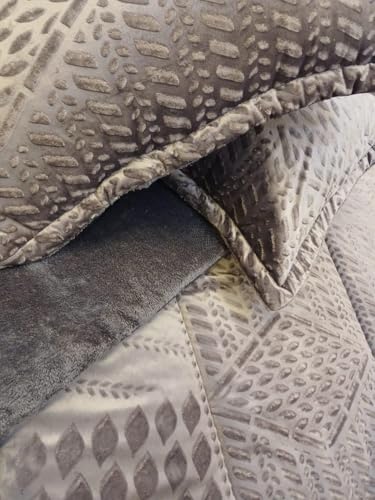 Generic - لحاف قطيفة منقوش بحفر ليزر - 4 قطع - وجه قطيفة حفر ليزر - ظهر فرو كثيف عالي الجودة لتوفير تسخين عالية - حشوة فايبر حراري - 1 لحاف فايبر مقاس King 240 * 260-2 خدادية 55 * 75 (رصاصي)
