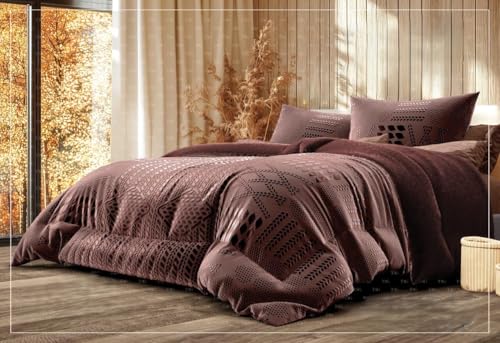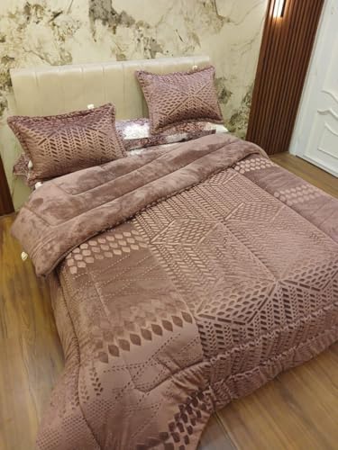 Generic - لحاف قطيفة منقوش بحفر ليزر - 4 قطع - وجه قطيفة حفر ليزر - ظهر فرو كثيف عالي الجودة لتوفير تسخين عالية - حشوة فايبر حراري - 1 لحاف فايبر مقاس King 240 * 260-2 خدادية 55 * 75 (طUBY)