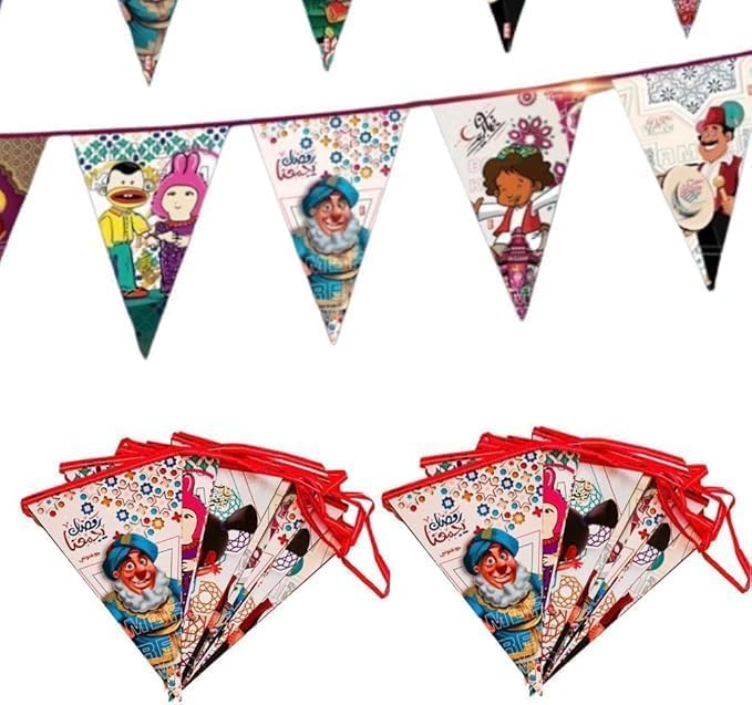 Generic - زينة رمضان) زينة رمضان - (مختلف الششكال) - طول الفرع واحد 4 متر مثلث كبير طباعة وجهين حجم كبير وخيط حبل قوي شديد التحمل 10 ورقة لكل فرع - مصنوع من الورق القوي (2 قطع
