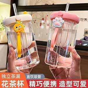 Generic - زجاجات عصير وماء مع فلتر فواكه + شفاطة وعصارة يدوية مدمجة 2×1 تناسب الرحلات والجيم والمدارس، 4 قطع