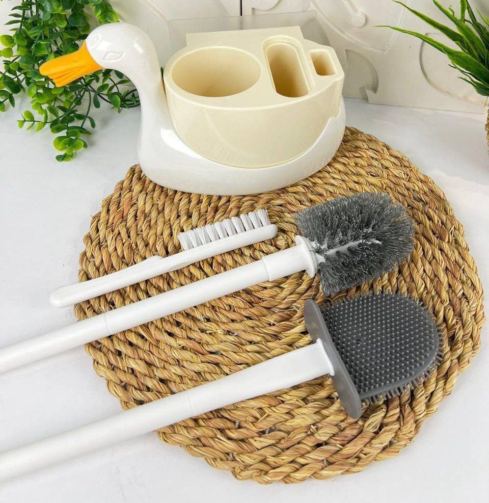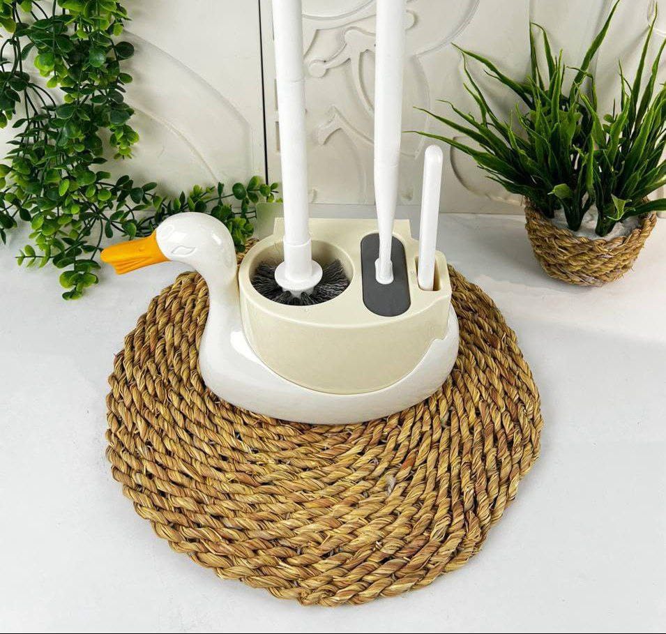 - FUN FUN FUNCTIONAL: The set is not a toilet brush, but it is a little decor piece that will brighten up the bathroom. Cute duck shape attracts eyes and creates a chic overall shape, and is practical as it helps to organize brushes in a neat and tidy shape.