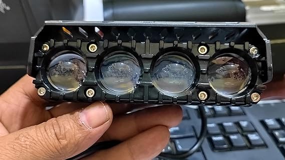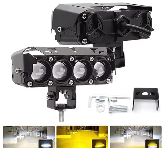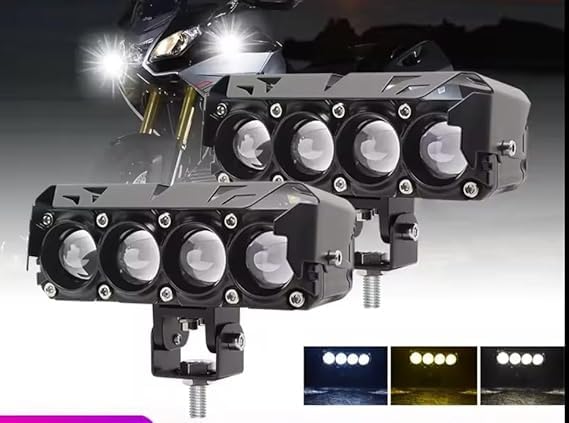 Generic - كشاف فانوس شبورة LED اضاءة قوية وساطعة - 4 عدسات جهاز عرض ضوئي اضافي، سلك 3 طرف اصفر وابيض، مناسب للسيارات والدراجات والمتوسيكلات والاسكوتر والشاحنات - قطعتين