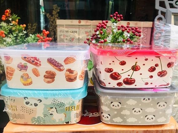 Generic - طقم علب ثلاجة حرارية محكمة الغلق من الاربع جوانب وبها جوان لمنع انسكاب السوائل مناسبة للميكروويف وغسالة الاطباق - 4 قطع، مقاسات مختلفه K