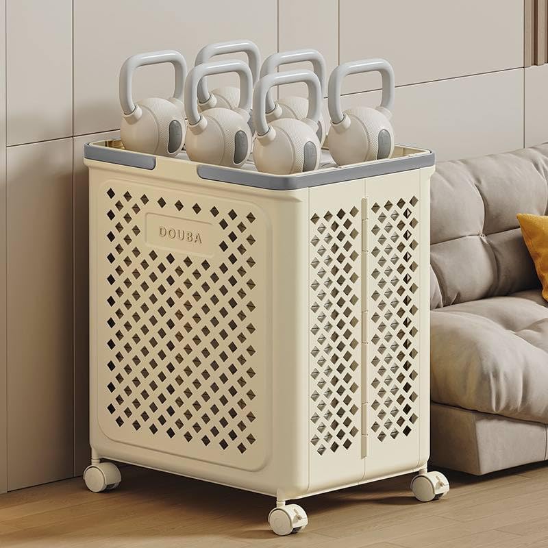 Generic - باسكت متعدد الأستخدامات قابل للطي و التخزين في اي مكان ولكل اغراض التخزين وتنظيم الملابس و الالعاب الخامه بلاستيك مقوى مزود بيدين لسهوله حمله مزود ب 4 عجلات لسهولة التحرك المقاس الكبير 49 * 36 * 28سم