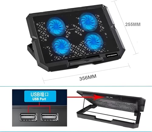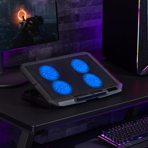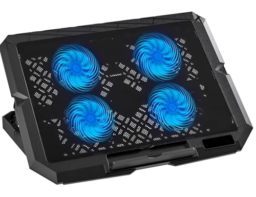 Generic - مبرد لابتوب ب4 مراوح قوية بإضاءة ليد - قابل للتعديل بـ 8 مستويات ارتفاع - متوافق مع أجهزة حتى 17 بوصة – منفذي USB- يوتوبيا UC-404