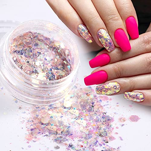 - MULTIPLE USAGES: Nail glitters flakes are very suitable for 3D nail art, flat nail art, body arts & crafts, party decorations, face, body, fingernails, cell phone case, invitation card, toenails etc
