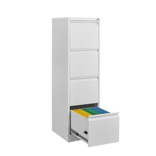 - SECURE STORAGE: Four-drawer metal filing cabinet with key lock system for safeguarding important documents and files