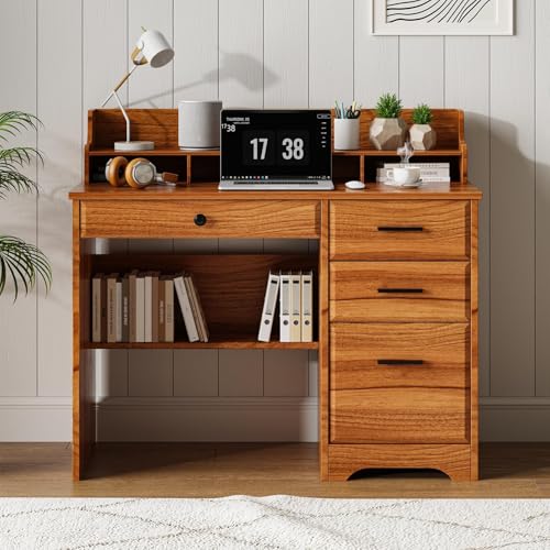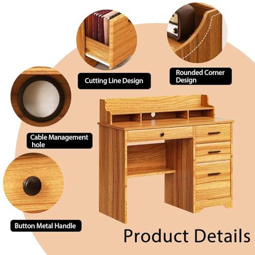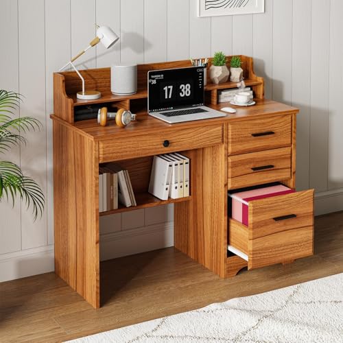 - 【Large Storage Space】 The rustic oak computer desk with storage drawers has a wide 20.5"D x 44 "W desktop, which is good for storing laptops and monitors and keyboards.The study table with drawers is equipped with three hutch shelves and drawers, an open bookcase and a filing cabinet and a divider to store office items in an orderly manner and keep the desktop neat and tidy.