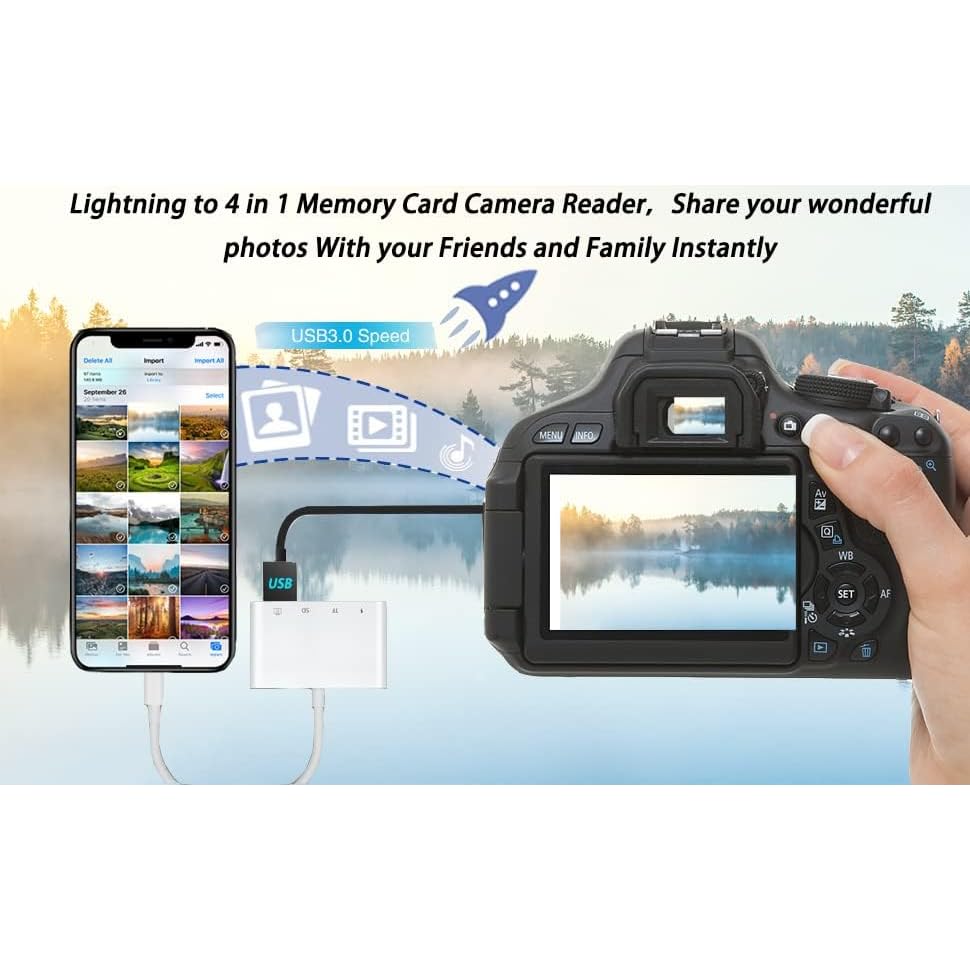 - 4-in-1 Design: Includes USB 3.0 port, SD slot, microSD slot, and Lightning charging port.