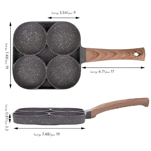 - تم تصميم هذه الطاسة بأربع فتحات مخصصة، مما يتيح قلي عدة أصناف في وقت واحد - سواء كانت بيضًا أو بان كيك أو فطائر - مما يجعلها مثالية لتبسيط روتين الصباح المزدحم وتحضير وجبة فطار لأربعة أشخاص دفعة واحدة وبكفاءة.