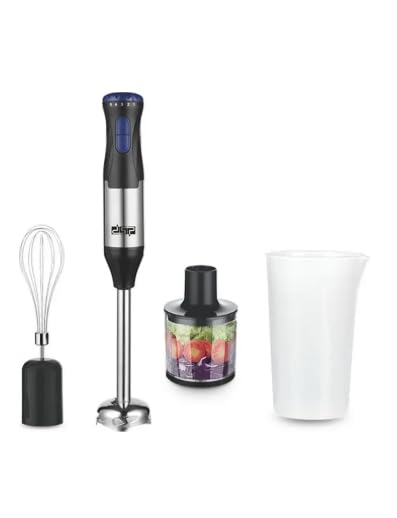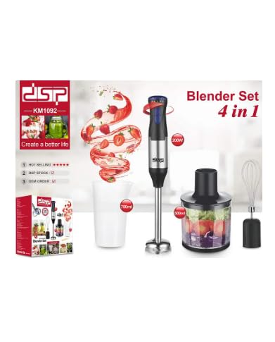 - COMPLETE 4-IN-1 SET: DSP hand blender includes immersion blender with stainless steel blending shaft, food chopper attachment, whisk attachment, and 600ml beaker for versatile food preparation tasks